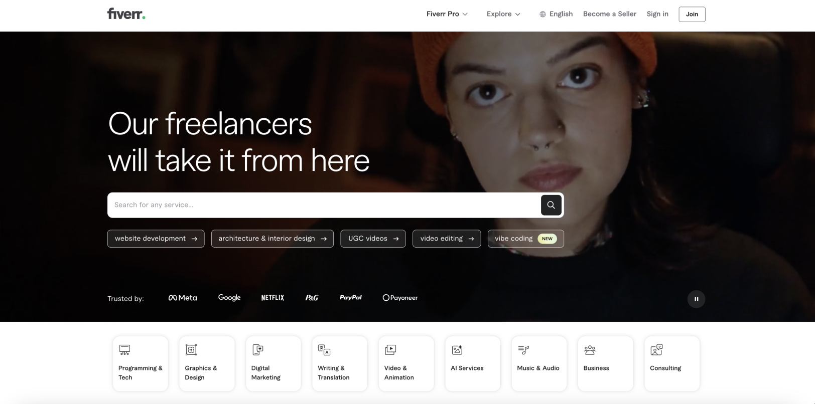 Fiverr offers services to freelancers and works with many different fields, including web development, graphic design, and content creation.
