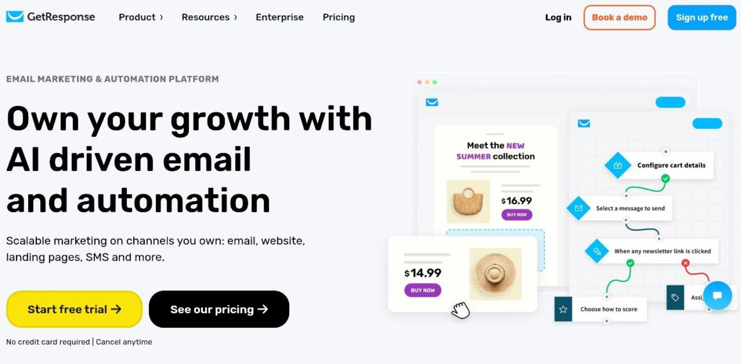 GetResponse is a platform providing features like website creation tools, landing pages, eCommerce marketing solutions, conversion funnels, webinars, live chat assistance, and other resources. You can use GetResponse to draw in leads, boost sales, and acquire new clients.