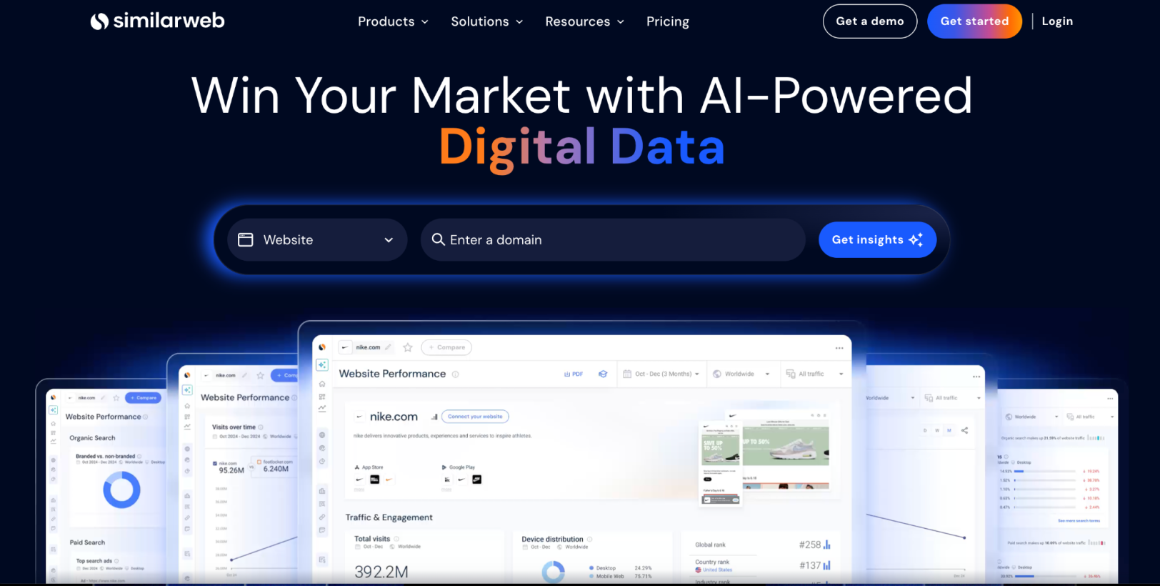 SimilarWeb is an AI-powered tool that shows how websites and apps are performing. It helps businesses and marketers see where traffic comes from, how users behave, and what competitors are doing. You can also track audience demographics, engagement, and market trends to make smarter decisions.