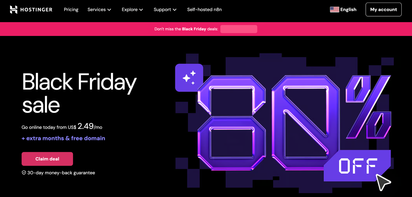 Hostinger is a global web hosting provider offering cost-effective solutions for websites, online stores, and applications. Its services include shared, cloud, VPS, and WordPress hosting, along with domain registration, a website builder, email hosting, and managed WordPress options.