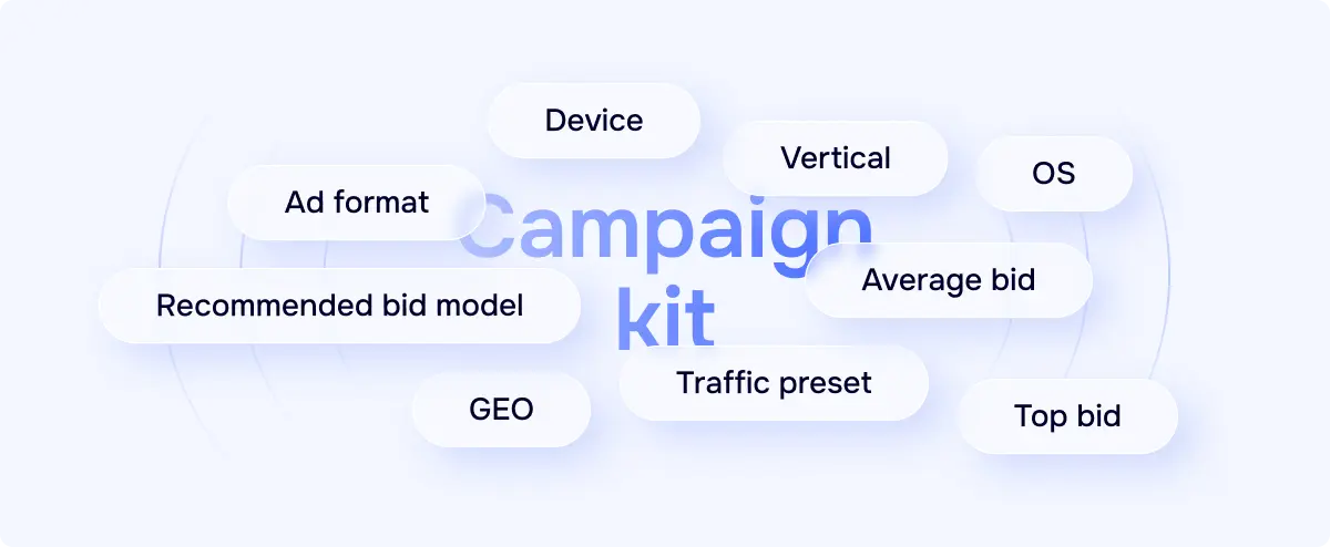Imagine launching a new campaign and staring at a blank setup page—not knowing which parameters to enter, what bid model to choose, how high your bid should be, or which zones to target. Now imagine having a ready-made solution that eliminates all that guesswork: a dedicated kit for each campaign that tells you exactly what to set, where to start, and how to launch with confidence. You simply open the kit, plug in the data provided, and you’re done. Your campaign is ready to take off—you just monitor and optimize. Sounds good? Then campaign kits are exactly what you need.