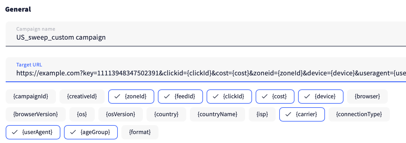 Step 2: Naming the campaign and adding the target URL.