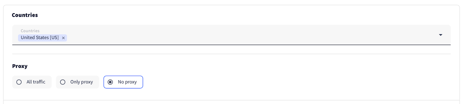 Step 4: Setting the country and disabling proxy traffic.