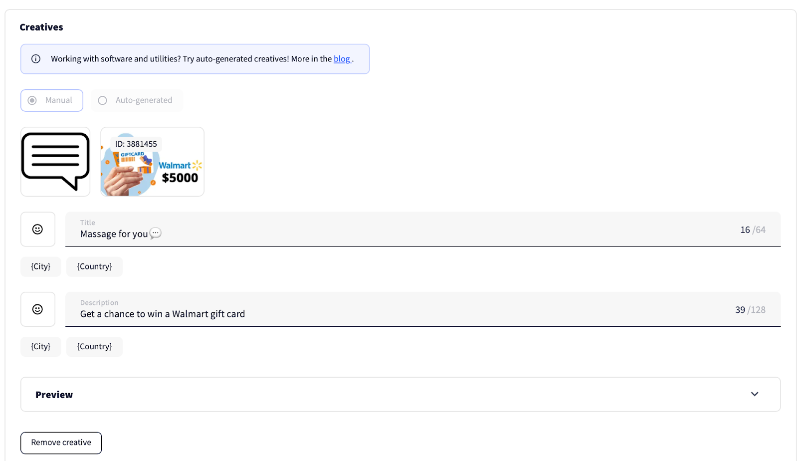 Step 3: Adding creatives.