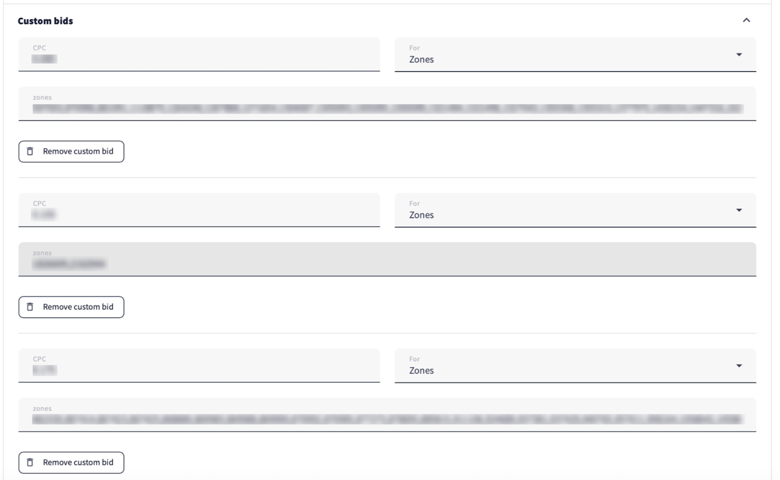 In this case, right from the start, we used the whitelist/blacklist and applied custom bids for certain zones—some of which we had tested in our previous case studies, and others were recommended by our managers (you also have access to this information; just reach out to us).