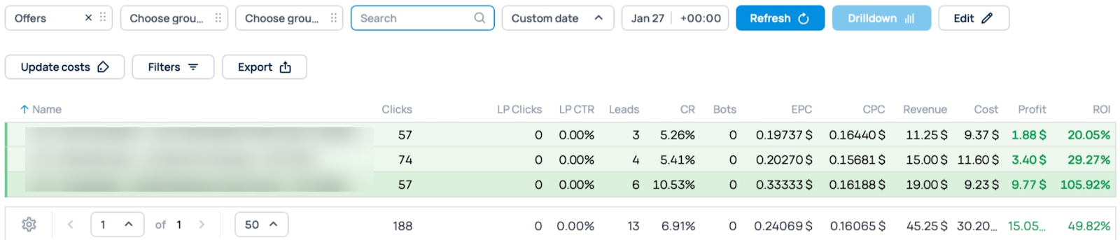 As you can see in the screenshot below, all the offers delivered great results from the very beginning.