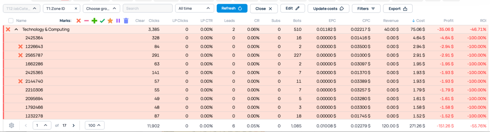This category included hundreds of zones that were dragging our campaign down. By disabling it entirely, we saved time and money—otherwise, we would have continued paying for wasted clicks (we had already paid for almost 12K of them).
