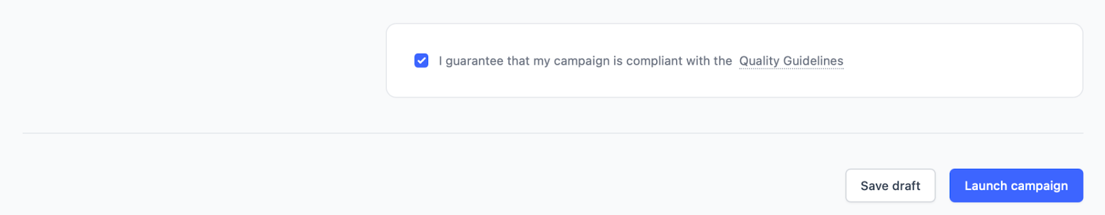 Step 7: All that was left was to place a tick in the section confirming that our campaign abides by the Quality Guidelines and submit it for moderation.