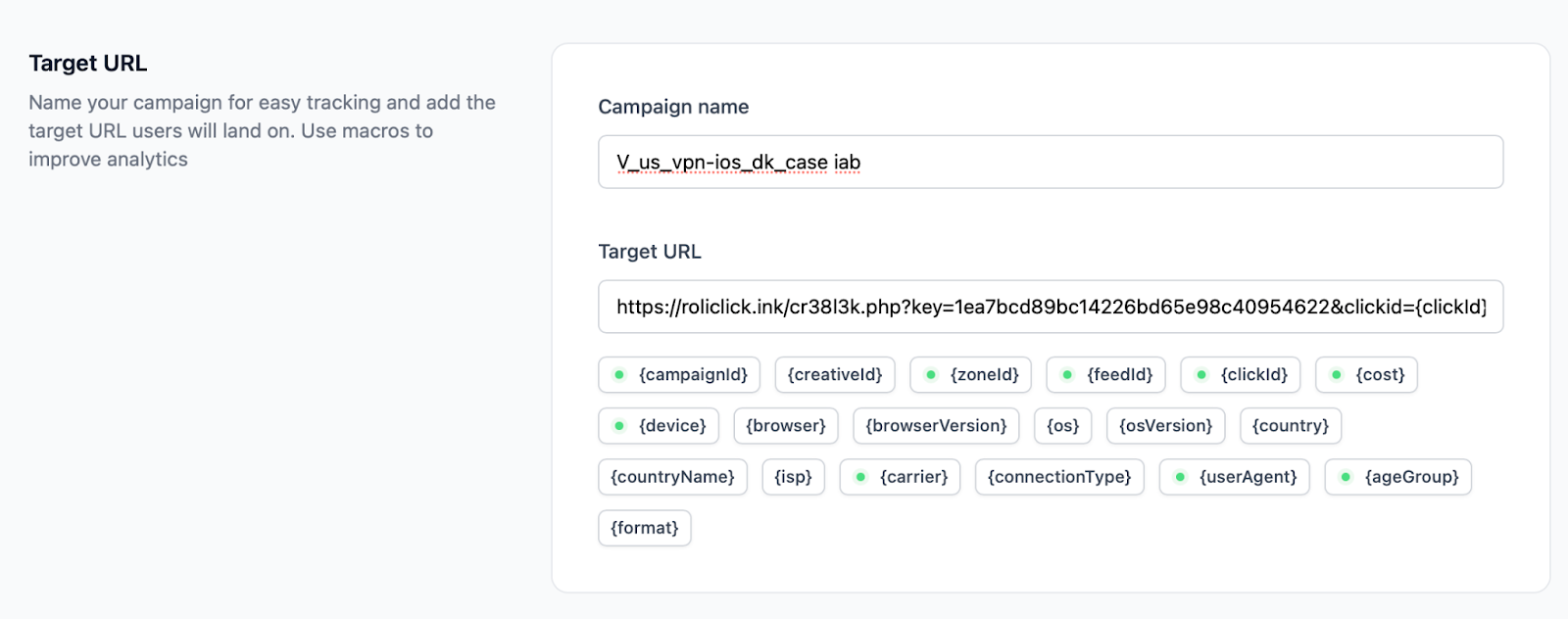 Step 2: We named the campaign and added the target URL.