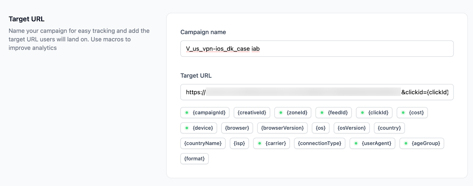To ensure IAB categories are passed and trackable, you’ll need to add macros. Consult your manager to confirm the exact parameters to use.